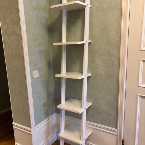 Vägghängd hylla med konsoler i vitt. 2 utdragbara lådor.