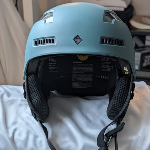 Sweet Protection skidhjälm i grå färg. Hjälmen har ventiler för luftcirkulation och vadderad insida med meshpaneler. Justerbart hakband och öronpartier med mjuk insida. Passar för skid- och snowboardåkning. Storleksmärkning finns på etiketten inuti hjälmen. Storlek M/L.