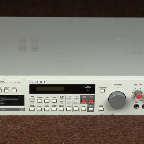 Akai S3000XL i väldigt bra skick. Skärmen är fortfarande läsbar, inga märkvärdiga defekter på framsidan förutom där skruvar ska sitta.
