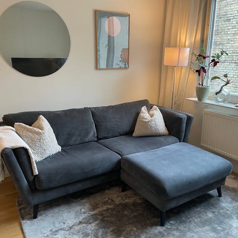 Färgen är mörkgrå. Rök- och djurfritt hem.