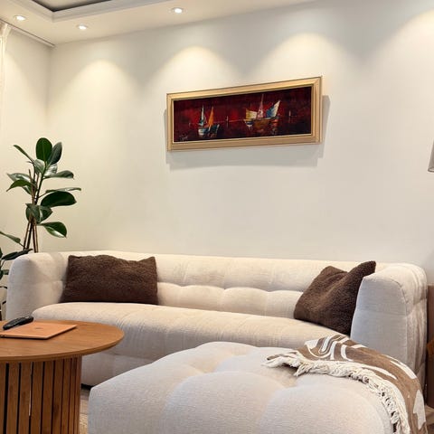 Säljer en stilren och elegant fotpall av modellen Bella från Mio. Klädd i det populära tyget Neve Cream 02 som ger en mjuk och exklusiv känsla. De svarta benen skapar en snygg kontrast och gör att fotpallen passar perfekt i både moderna och klassiska hem.