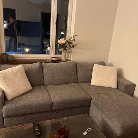 Bellus magnum soffa i grönt. Superbekväm, rymmer lätt 4 personer och är en utmärkt bäddsoffa. Den har några små skador på ena sidan (på bilden), annars är det en vacker och kvalitativ soffa - vi säljer den eftersom den är för stor för en ny lägenhet.