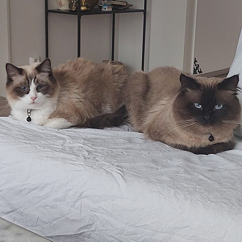 Vi säljer två mycket tama och lekfulla Ragdoll-katter, en hane och en hona. De älskar att leka, särskilt med barn, och är väldigt lugna till sättet. Båda tycker även om att bada!