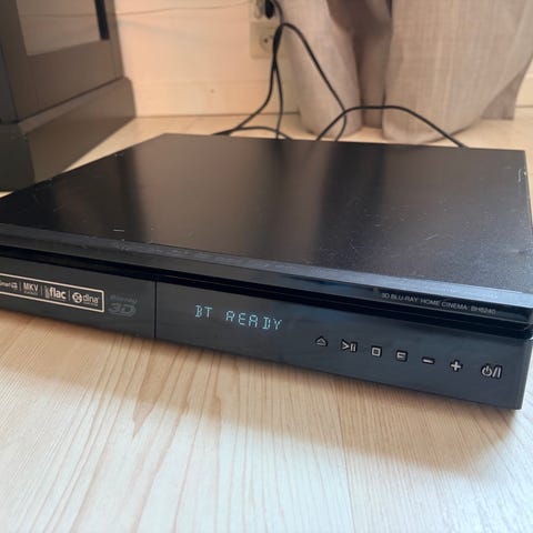 Creative Gigaworks T3 högtalarsystem med subwoofer. Systemet har anslutningar på baksidan av subwoofern, bland annat RCA-ingångar och anslutning för satellithögtalare. Det finns även en rund kabelansluten kontrollenhet med volymreglage och hörlursuttag. Strömförsörjning via nätkabel och ljudanslutning via 3,5 mm kontakt till ljudkälla som dator, TV eller annan enhet med motsvarande utgång.