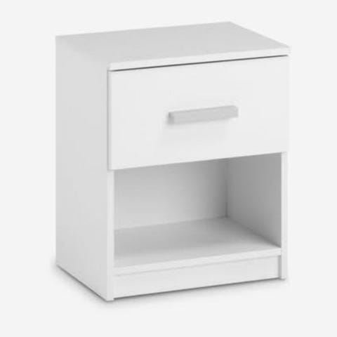 Vi säljer ett vitt sängbord i riktigt bra skick. Den har en rejäl toppskiva och en rymlig låda för allt du behöver under kvällen och natten. ( Klicka / Tryck på bilden så ser du den större och bättre )