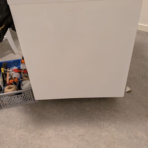 Kolla på bilden som är inringad med rött. Armen som leder vatten till översta hyllan är lite lös, men inget som påverkar funktionen. Går säkert att fixa för den händiga.