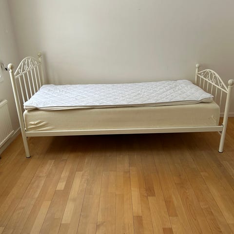 Det finns fläckar på madrassen och bäddmadrassen är nopprig – (skickas med om köparen vill.)
