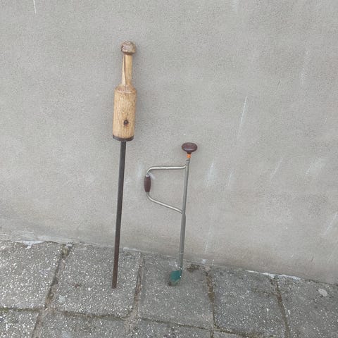 Isfiskeset med isborrar, pimplespön, beten och tillbehör