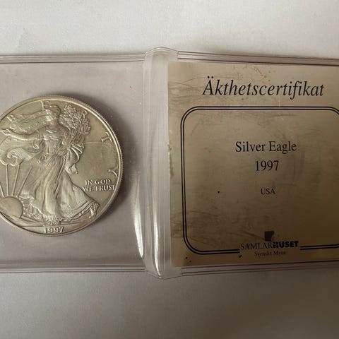 USA Kennedy half dollar mynt från 1964 med vikten 12,5 g. Myntet visar president John F. Kennedys porträtt på framsidan och USA:s statsvapen med örn på baksidan. Levereras i genomskinligt plastfodral enligt bild. Lämpligt för samlare av amerikanska mynt och numismatik.