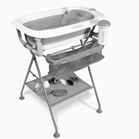 badbalja med fack för tvål och tvättlapp. Bottenplugg för enkel tömning av vattnet. Badbaljan har antiglidribbor på undersidan så att den står stilla.