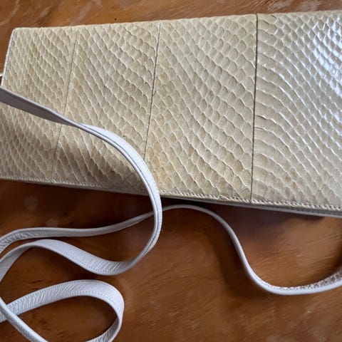 Väskan är i mycket bra skick. Väldesignad med mässingspännen. Den är inköpt i Hamburg ca 1990. Förutom ödla så är den tillverkad i skinn. Insidan är borstad läder och läder. Priset ligger fast.