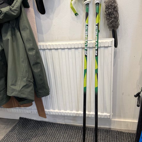 Atomic skidstavar i längd 95 cm. Stavarna är gula med svarta detaljer och har ergonomiska handtag med handledsremmar.