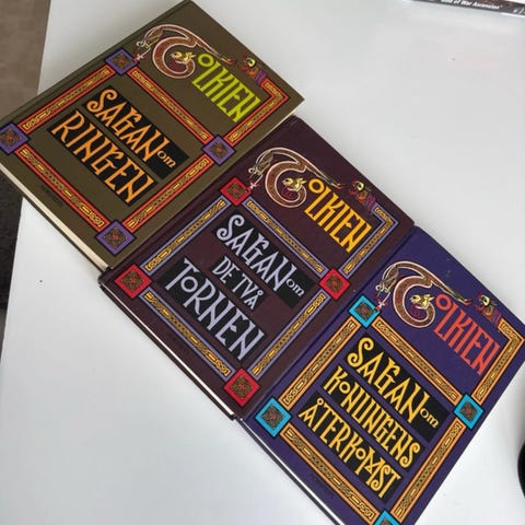 J.R.R. Tolkien Sagan om ringen och Sagan om de två tornen. Svenska originalutgåvan, 1959 och 1960.
