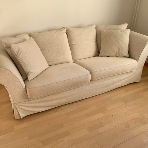 Soffgrupp 3-sits soffa och fåtölj beige tyg