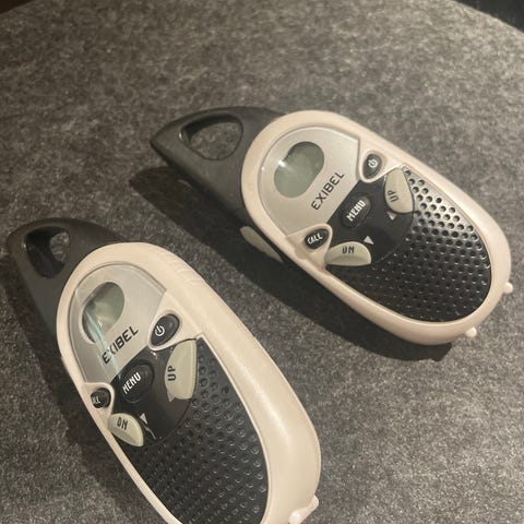 Fungerande walkie talkies (2 st). Kanalväljare och volymkontroll. Perfekta för barn, utflykter, camping eller lek. Batterier medföljer ej.