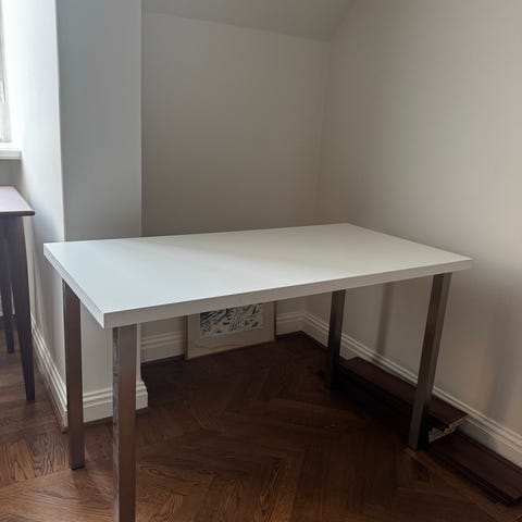 Säljer nu ett Ikea skrivbord i vitt och stålben. Lite tecken på användning, annars bra skick.