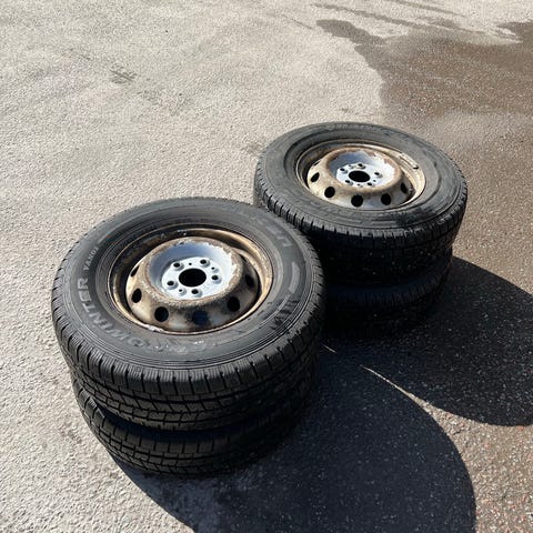 Stålfälg med vinterdäck som säljs som däck med fälgar. Däcket är monterat på en silverfärgad stålfälg med bultcirkel enligt märkning på fälgen. Mönstret på däcket är av vintertyp med dubbar. Passar personbil som använder denna typ av stålfälg och vinterdäck. Exakta mått och dimensioner framgår av märkningen på fälgen och däcket på plats. Har suttit på opel combo 175/70R13
