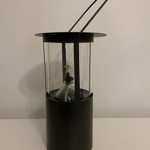 Cylindrisk lampa från By Rydéns i metall med dekorativt utskuret mönster som sprider det flammande ljuset genom skärmen. Passar som stämningsbelysning utomhus på exempelvis altan. 67 cm hög.