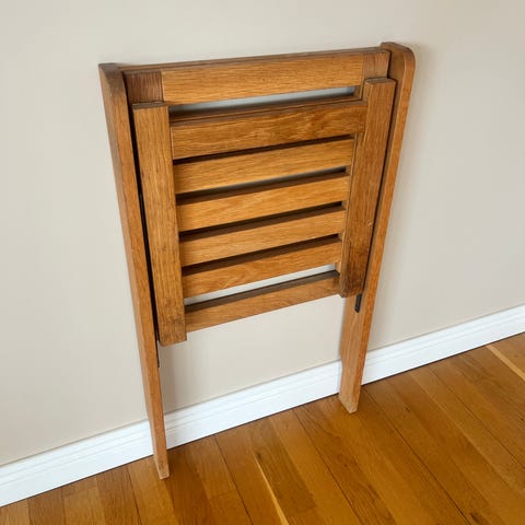 Fällbar väggpanel i ek. Mycket fin, aldrig använd. Sitthöjd 45. Tror det kan vara Zitti från Torkelson. Säljer åt min pappa, därför osäker på var den kommer ifrån.