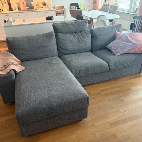 Modellen är Ikeas VIMLE 3-sitssoffa med schäslong. Nypris 9495kr!