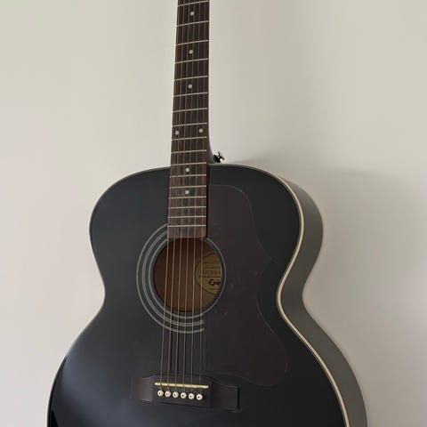Ibanez J-560BK akustisk gitarr i svart utförande. Stålsträngad westernmodell med stor kropp för fylligt ljud. Gitarren har dekorativ plektrumskyddsdesign och markerade bandinlägg på greppbrädan. Passar för kompspel, singer/songwriter och allmänt akustiskt spel i hemmet, replokalen eller vid inspelning.