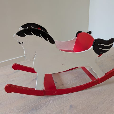Gunghäst från 1964 bortskänkes. Fabrikat: Steiff. Fås vid avhämtning i Nykvarn, Södertälje. Sliten men alltid förvarad i torra, varma lokaler.