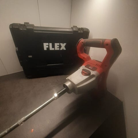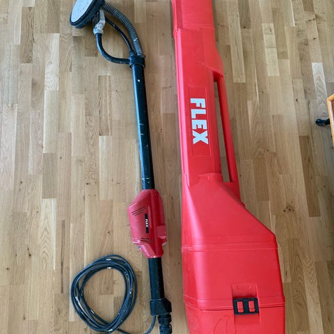 Flex GE 7 giraffeslip för slipning av väggar och tak. Maskinen har rund slipplatta och långt skaft för arbete på höjd. Levereras med förvaringsväska och 10 slippapper (p120) enligt bild. Endast använd 1 gång.