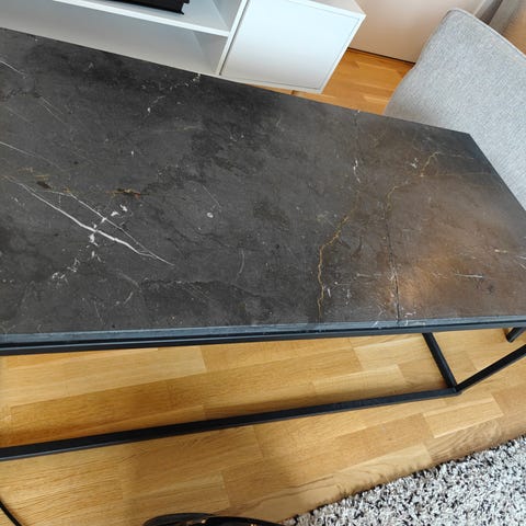 Helt felfri granit skiva med måtten 90 cm lång och 60 cm bred. 3 cm tjock skiva. Den ligger löst och används som soffbord.