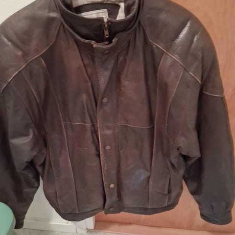 Brun skinnjacka med pälskrage.