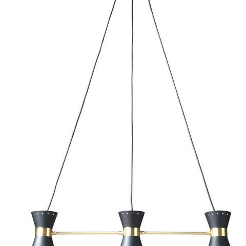 Stomme i mässing, skärmar i polykromt lackerad metall, 3 ljusarmar, dubbla ljuskällor