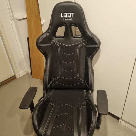 Gamingstol i svart tyg med hög rygg och nackkudde. Stolen har hjul, justerbara armstöd och sits samt ryggstöd med vaddering. Passar vid skrivbord eller datorplats hemma eller på kontor. Finns på Bryggudden Katlstad.