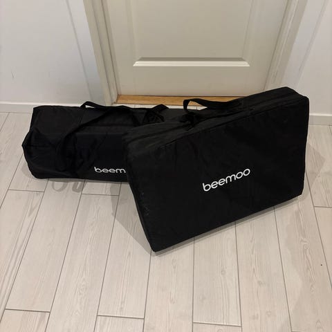 Tyget kan tas bort från aluminiumramen och tvättas. Tjock, stabil madrass och inkluderar en väska