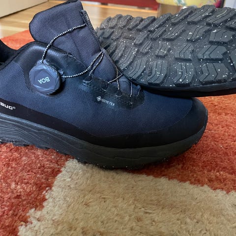 Icebug Rover Mid RB9X GTX sneakers i storlek 44. Modellen är en mellanhög sko i svart med grovmönstrad yttersula för bra grepp. Ovandelen är i syntet/mesh med BOA-snörningssystem. Skorna har Gore-Tex-membran (GTX) som gör dem vattenavvisande. Passar som vardagssko eller för promenader och lättare friluftsaktiviteter.