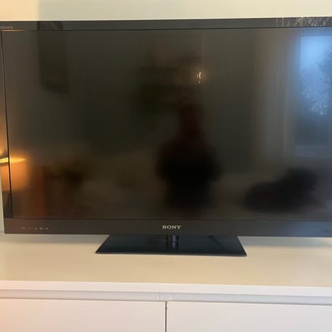Sony tv i svart utförande. Platt skärm med rektangulär fot. Passar för användning i vardagsrum, sovrum eller som extra tv. Äldre modell