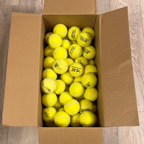 Begagnade padelbollar för övning.