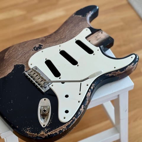 Helt byggd i svenskt trä från Skåne. Kroppen är i ask och halsen i lönn. Byggd helt och hållet för hand utan CNC-maskiner och relicerad nitrolack av oss på Otforsguitars!