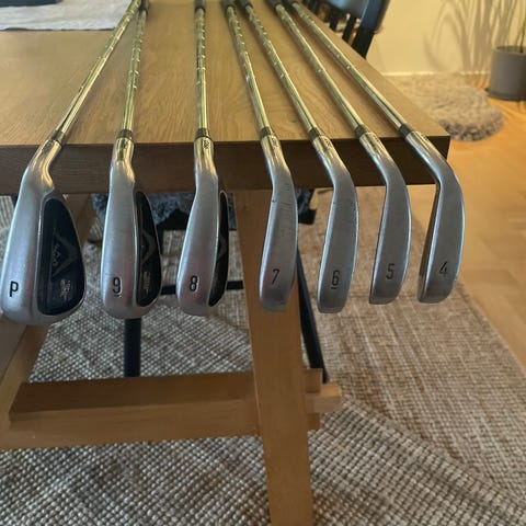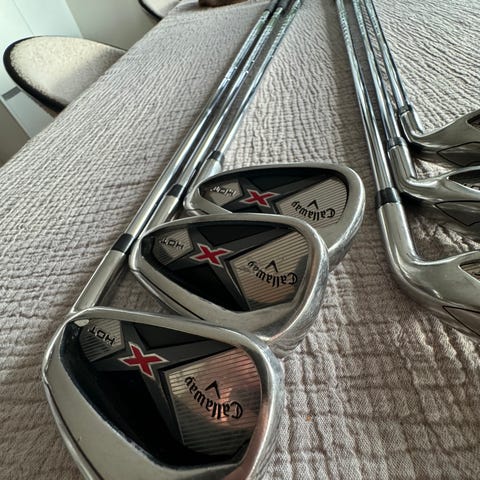 Säljer ett Callaway X-tour järnset , 5-PW , höger , stål/stiff skaft. Klubborna har klassiskt cavity back-huvud i metall och är i ett använt men bra skick!