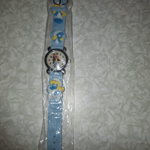 Design: Modellen har en turkos urtavla med en illustration av en katt som bär en röd rosett. Ramen är gjord av kromad metall med en glasfront.