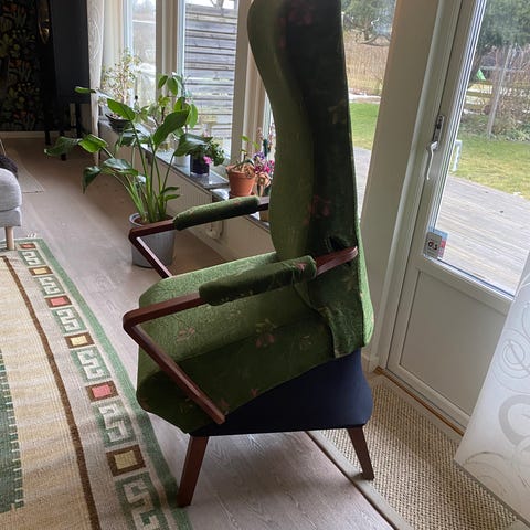 Fåtöljen är försedd med en spak med vilken man kan låsa fåtöljens position i vilket läge som helst mellan helt nedfälld och helt uppfälld. Ibland vill man kanske sitta något högre och mer upprätt.