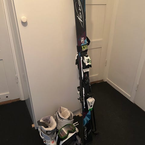 Skidor med bindningar (Atomic), Salomonpjäxor 27,5, hjälm med glasögon samt stavar. Utrustningen har några år på nacken men är i bra skick med inga stora skavanker. Ett perfekt startkit för den som vill prova på utförsåkning. Kan säljas tillsammans med Slalompaket för tjej, se separat annons. 2500.- för det här, eller 4000.- för båda.
