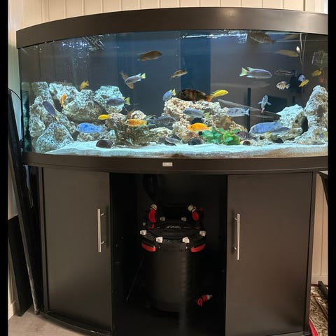 Just nu går bara två Geophagus sveni (Sydamerikansk Ciklid) och en Ancistrus (algätare) i akvariet.
