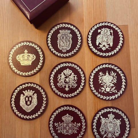 6 stycken vackra glasunderlägg med konstmotiv av kvinnor. Köpt på en antikmässa.