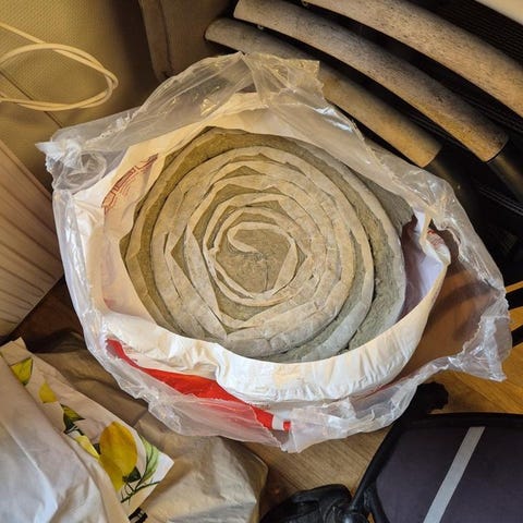 Rockwool Komfort värmematta och Isover U Protect Wired Mat isoleringsmattor. Rockwool-rullarna är märkta med tjocklek 80 mm och mått 2500 x 600 mm per skiva. Isover-rullarna är märkta med tjocklek 50 mm och mått 6300 x 600 mm. Mattorna är avsedda för värme- och brandisolering av rör, kanaler eller andra installationer där mineralullsisolering används.