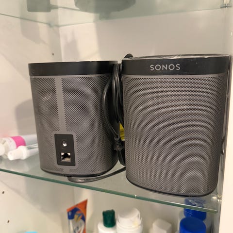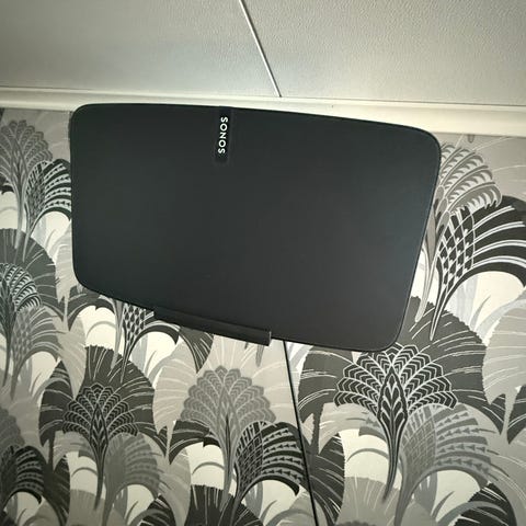 Sonos Move högtalare i svart färg. Trådlös högtalare som kan användas för uppspelning av ljud i hemmet eller på uteplatsen. Passar för musik, poddar och annan ljuduppspelning via kompatibla enheter och tjänster. Levereras med laddningsbas enligt bild.