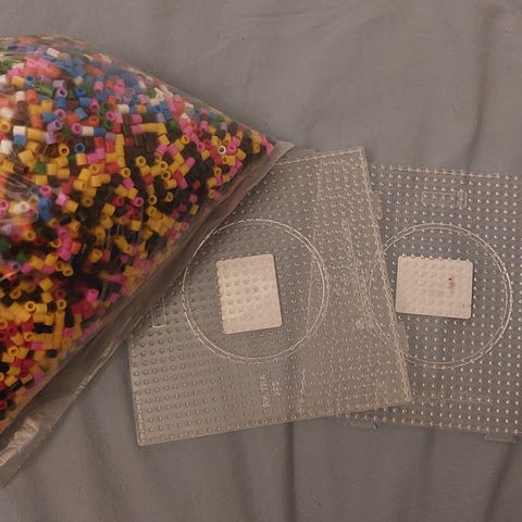 Pärlplattorna är byggbara fyrkanter fr Hama, 14,5 x14,5 cm ca