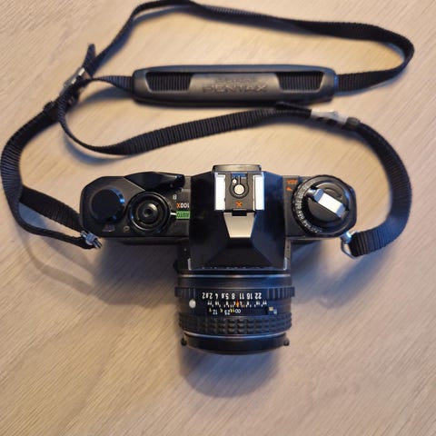 Pentax MV analog kamera med objektiv. Nästan inga tecken på användning. Samlarobjekt. 100% fungerande.