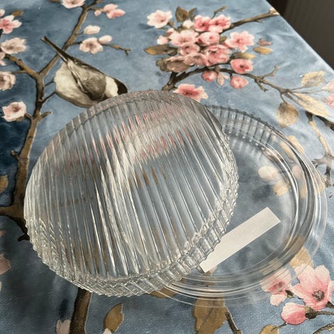 Minns inte var är den köps ! Observera att nederkanten på burken är naggad/skadad, se bilder för skick.