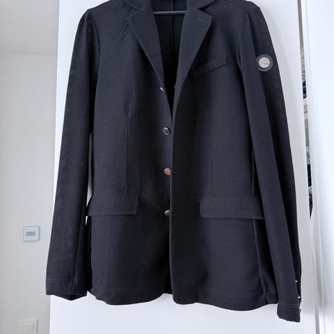 Pikeur kavaj i svart färg. Klassisk ridkavaj med krage och tre knappar framtill. Fickor med lock och Pikeur-logotyp på ena fickan. Slät utsida och fodrad insida för bekväm passform. Passar till exempel för dressyr och annan ridning där kavaj används.