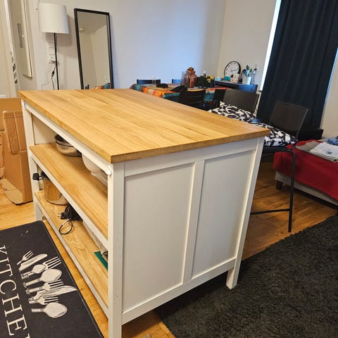 Köksön fungerar som arbetsyta, matplats och mycket bra förvaring i kök och allrum. Även jättebra för uppdukning av buffé eller perfekt för mingel.