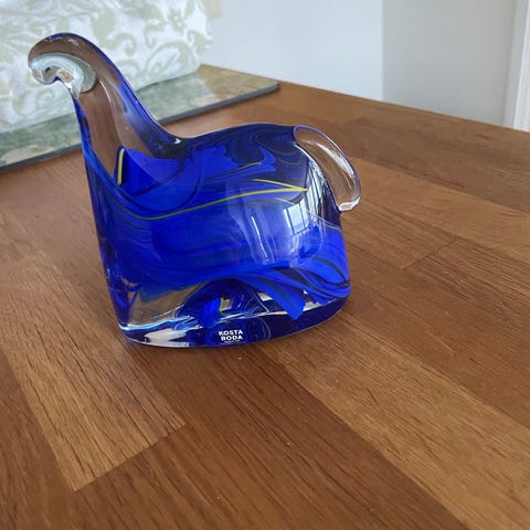 Glasfigur katt blå